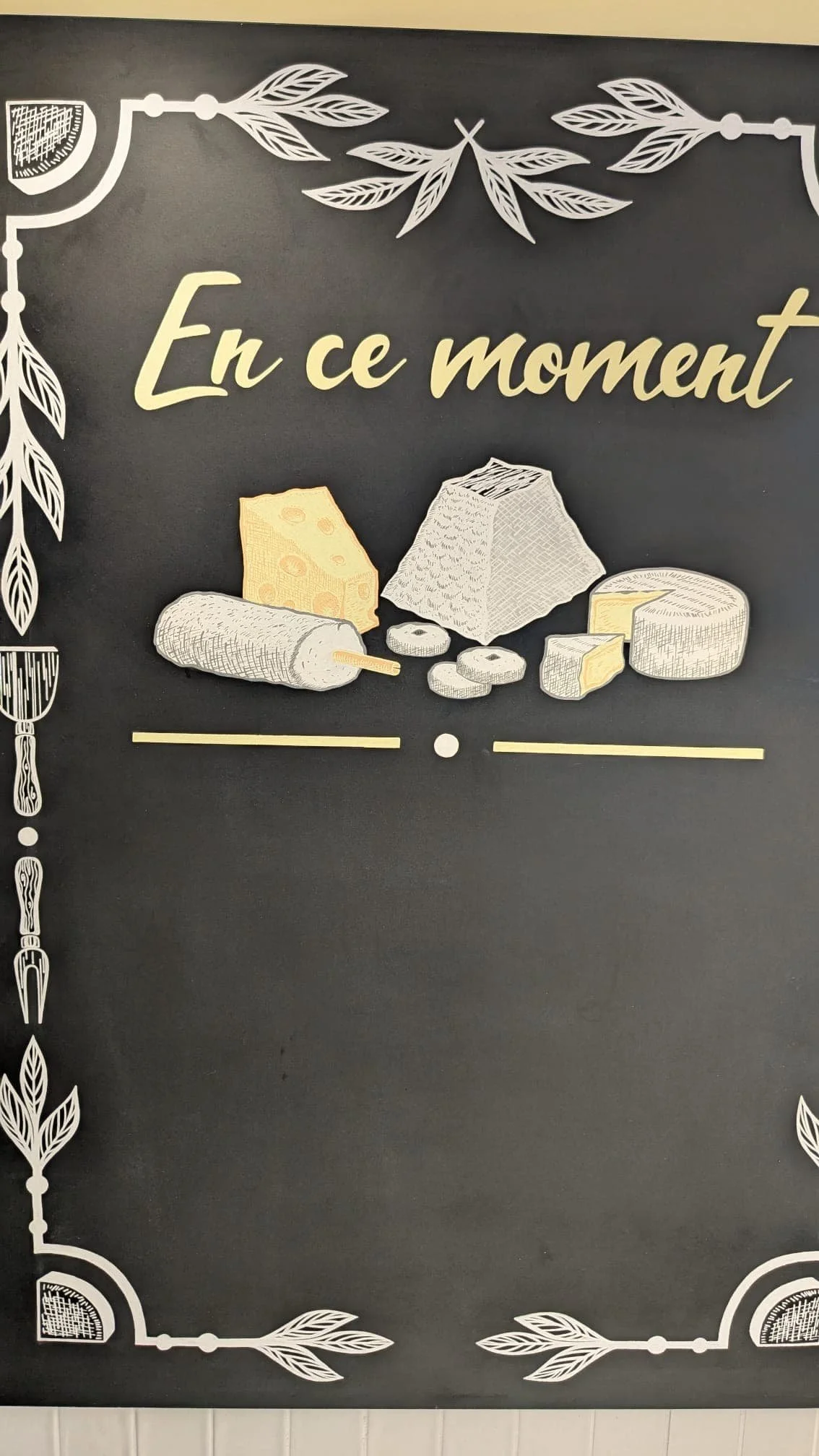 Ce travail artisanal, riche en détails et en élégance, transforme une simple ardoise en un support décoratif stratégique, qui renforce l’identité visuelle de la fromagerie, communique sur les offres du moment et attire le regard des clients.