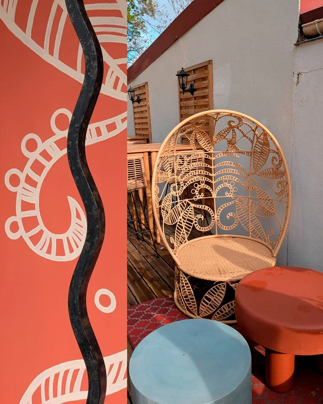 Au fond du bistrot Papillote à Chatou (78) se cache un jardin d’été au style bohème et élégant, mêlant rotin, coussins, tapis, parasols à franges, bananiers et une ambiance chaleureuse unique.