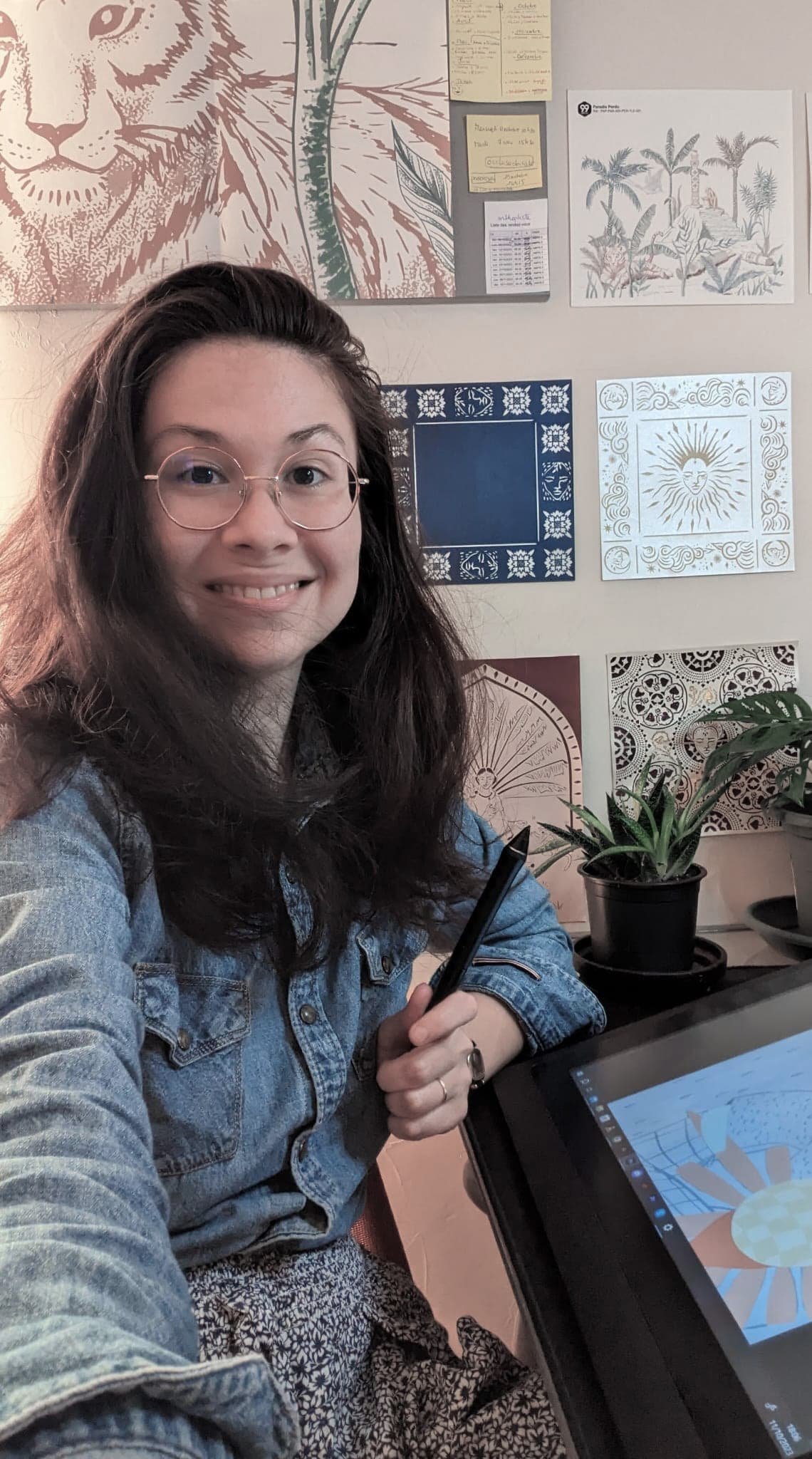 Aujourd'hui, j'exerce depuis bientôt trois ans comme illustratrice et peintre de vitrines et ardoises en Île-de-France (Yvelines, Hauts-de-Seine, Val-d'Oise et au-delà). Mes clients sont des commerces, des restaurants, des entreprises, des mairies, des médiathèques : je crée des décors peints à la main qui captent le regard et racontent une histoire.